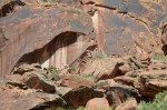 After Rocky Mountain National Park, there was really only one (realistic) wildlife viewing experience Erin really wanted out of Colorado: Bighorns. On several occasions bighorn sheep had eluded us but as we’re leaving Colorado today, yesterday was one of our last chances. We went to Little Dominguez Canyon in the morning, with the hope of hiking in just a little ways to see sheep before coming back home to finish up packing, saying goodbye to friends, etc. We walked the first stretch along the railroad tracks and crossed over the river on a foot bridge with no sightings. Then we stopped to give Zari (our dog) water, as she was drinking I scanned the cliffs and right there above us were 6 bighorn sheep calmly watching us, including two infants.