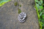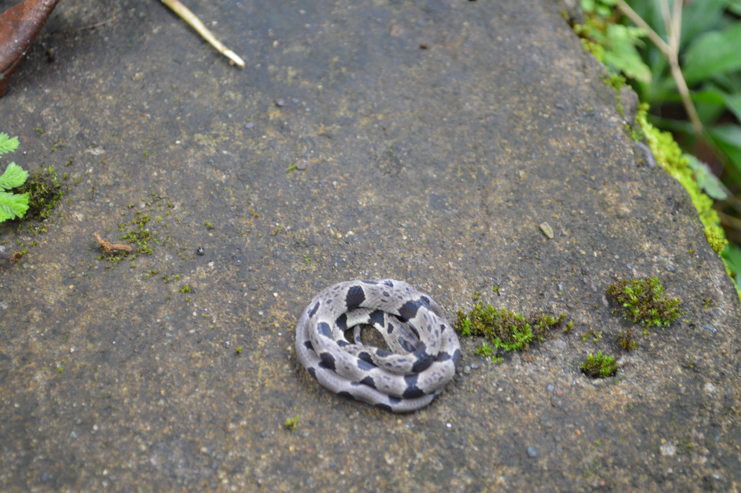 We found this little snake curled up on our steps a few weeks ago, just taking a nap in the sun. After consulting the reptile and amphibian book, we determined this is an Andean Snail Eater (Dispsas andiana); a snake specialized in eating gastropods by tracking their slime trails. The snake has a distinctive U shape on its head that makes it easy to identify. The next day the Snail Eater had slithered off,perhaps in pursuit of snails.