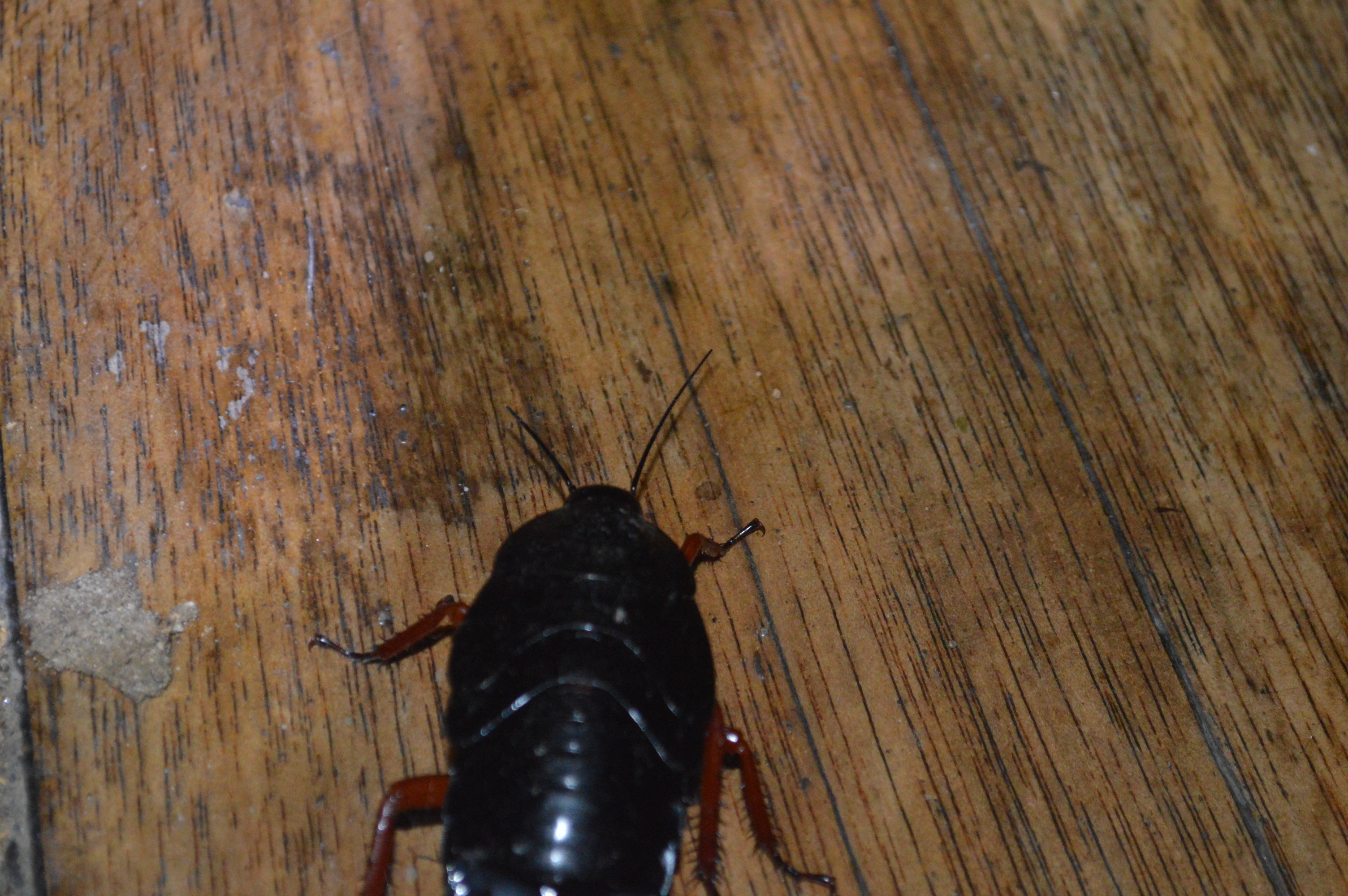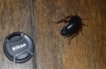 A while ago I woke at 3:30 in the morning, hearing a strange buzzing noise outside of the mosquito net on Erin´s side of the bed. I lay for a second or two, my sleep cloudy mind groping in vain to identify the sound. Was it nocturnal predatory wasps? A Cloud forest rattlesnake perhaps? Maybe it´ll just go away I though but the noise persisted, becoming more urgent if anything. I nudged Erin and in seconds, we were climbing out of the net on my side of the bed, fumbling with head lamps. My light illuminated a very strage creature indeed thrashing around on the floor next to the open window. For a second my mind couldn´t contain what I saw, the legs moving, the insectile buzz and then it all came together, and I understood. Infront of us on the floor was a completely harmless although potentially horrifying animal. I was partially thrilled and a little bit scared by it. A giant cock roach had flown in through our window and somehow ended up helpless on its back. I quickly captured it in a large jar next to the door specifically for catching arthropods in and released in on our front porch, taking some photos next to my lens cover to show how large the roach actually is. After a bit of research, it seems likely it´s a cockroach from the Blaberidae family.