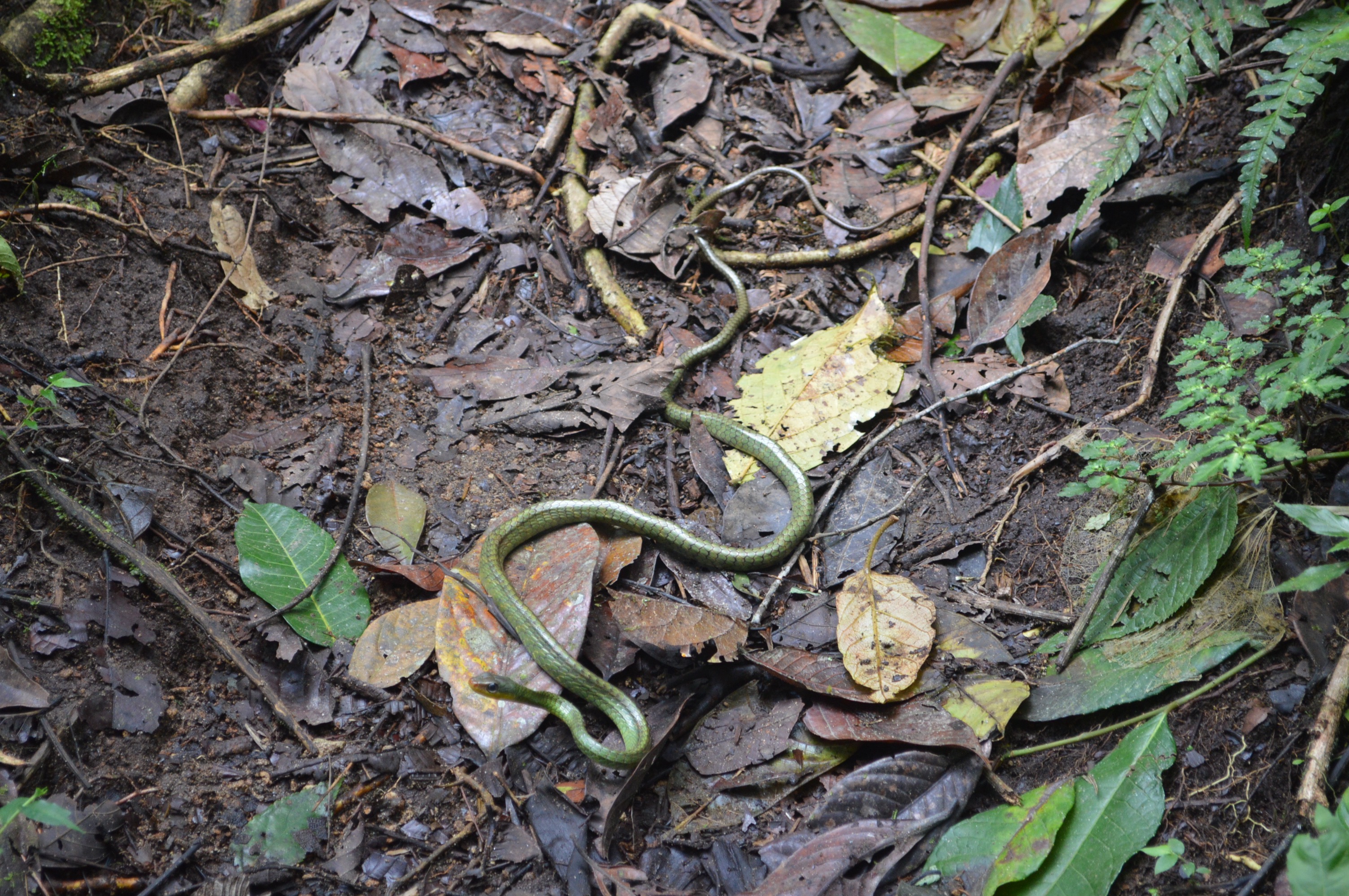 Snakes have been by far the most commonly seen reptiles during our time at Las Tangaras Reserve near Mindo, Ecuador. In fact, we’ve only seen one lizard and several snakes, including a pit viper. Many people concerned with snakes wear tall boots as protection (there are even tall, thick “snake boots” usually guaranteed against the bite of any North American snake) yet the famous botanical explorer of the Amazon, Richard Evan Schultes subject of the book, One River felt that short moccasins from L.L. Bean were adequate, saying that there are plenty of snakes that can bite you in the face (or at least above the boot level). If anyone knows about the Amazon region, surely Schultes did, even if his specialty was ethnobotany, his advice is good.