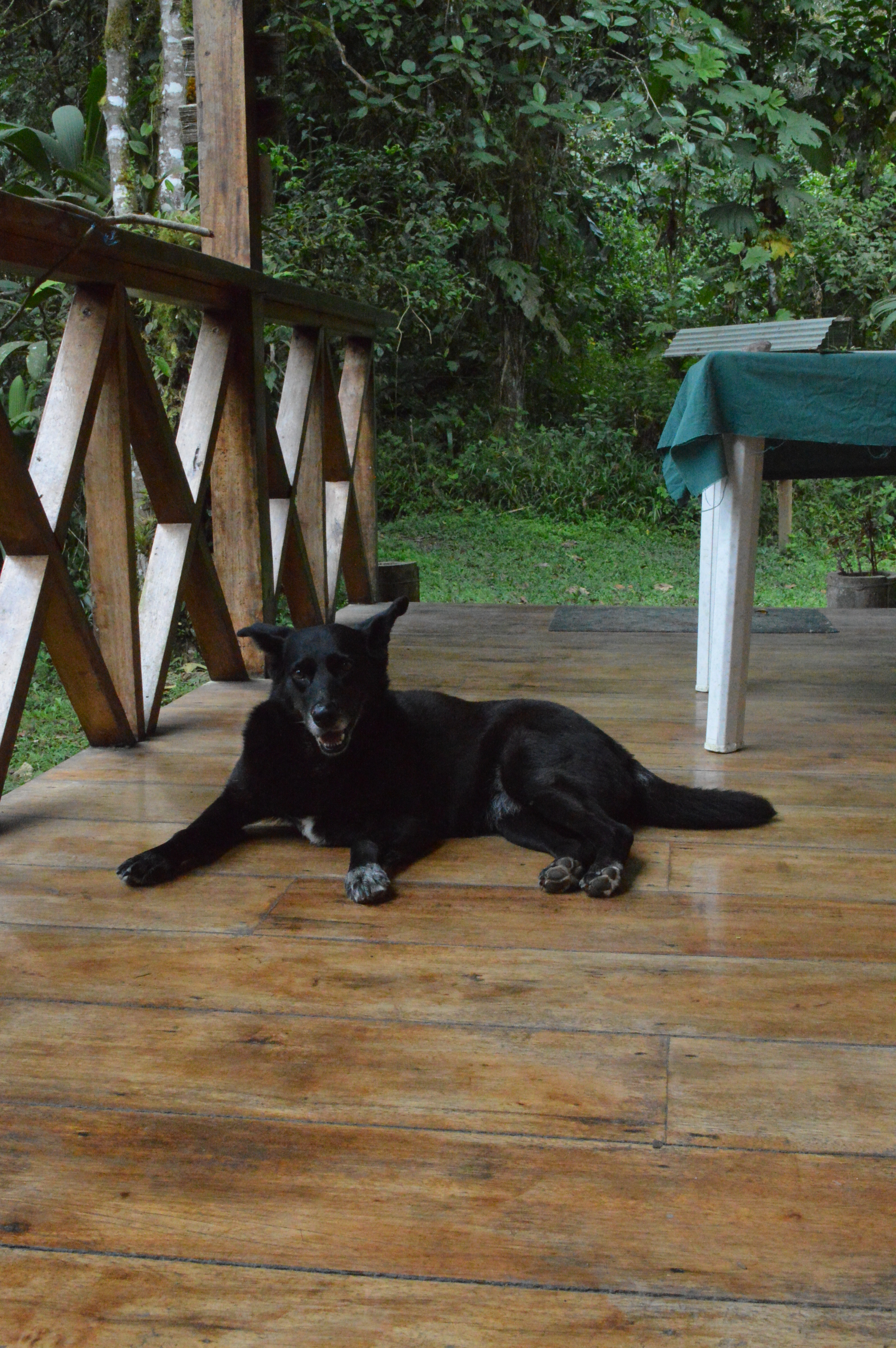This post is a bit unusual as it’s about a friend Erin and I came to know in Ecuador. It’s about Holly, a true jungle dog owned by a British expat couple who own Bird Watcher’s Breakfast. Bird Watcher’s Breakfast was a wonderful place to eat breakfast outside while, you guessed it, watching birds. It’s also where we met Holly. I’ve talked a little about Holly before but never in-depth.