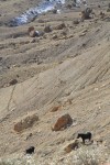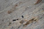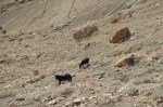 From there we walked more or less along the top of the book cliffs, eventually finding an easy route through a crack down to the base of the top, steep part of the cliffs. Then we made our way back towards the trail at the bottom of the caprock cliffs. Almost right at the trail is when we saw two wild horses. We just sat and watched the horses for a while before going back down.