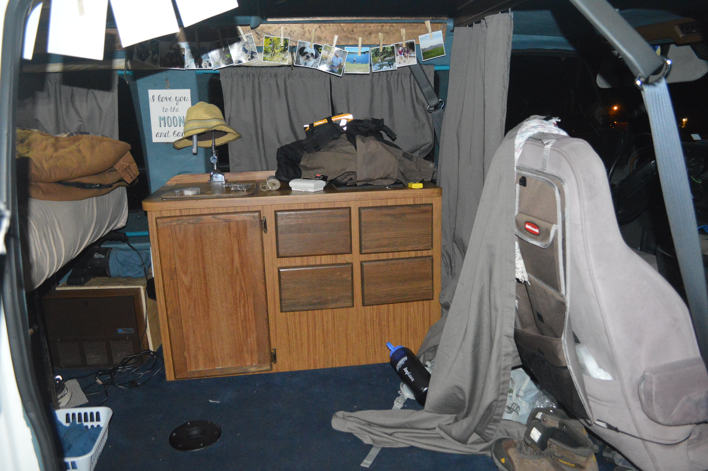 DSC_0352 July 29, 2017 Return to: Going NomadicFull resolution (3008 × 2000) Image navigation Previous Image Next Image Our Van finished, decorated and already somewhat messy.