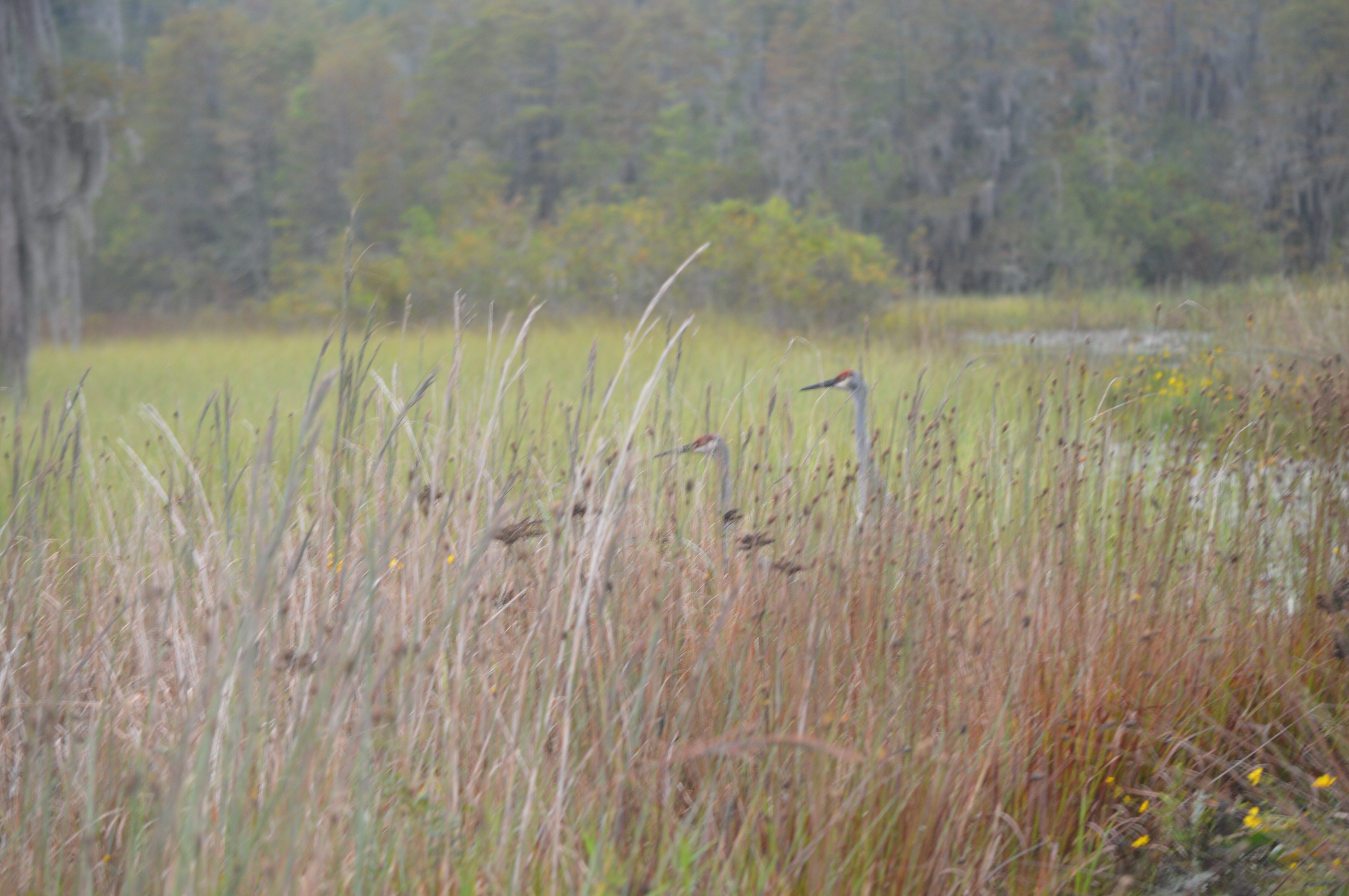 That night I heard a familiar trilling noise, something that reminded me of an animal I’d heard in Nebraska, which seemed a world away. I’d heard it the night before. I was pretty sure I knew what the noise was but I couldn’t be completely certain until I saw Sandhill cranes the next morning as I canoed towards the entrance of Okefenokee on my last day at that particular swamp. It was a happy way for me to end my Okefenokee trip and begin on the rest of my road trip to Southern Florida. My next stop was Kissimmee Prairie Preserve State Park, where the last report of a Carolina Parakeet was made.