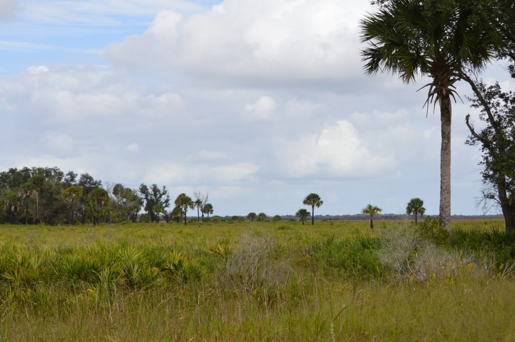 My driving took me to the long dirt road leading into Kissimmee Prairie Preserve State Park. A prairie may seem like an odd place to look for alligators but like everything in Florida, it comes with a heaped serving of water. Sloughs and smaller pools are found in Kissimmee. The prairie is also a rare piece of preserved landscape in Florida, which in many places is very much over developed. An influx of people after World War II into the sunshine state has changed what was recently relatively pristine into an abomination of condos and golf courses in short order. Kissimmee Prairie Preserve is thus a relict of a past age, where the stars can still be seen in a dark sky at night, where prairie isn’t entirely taken over by cattle ranches, farms and sprawl. It’s also the last known place where the (now extinct) Carolina Parakeet was spotted.